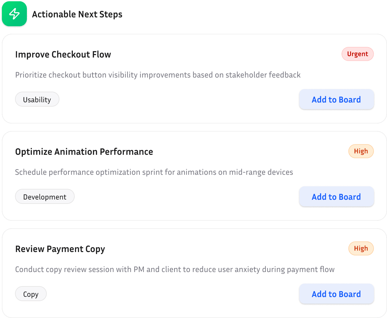 Auto-group feedback by themes like usability, copy, or dev constraints